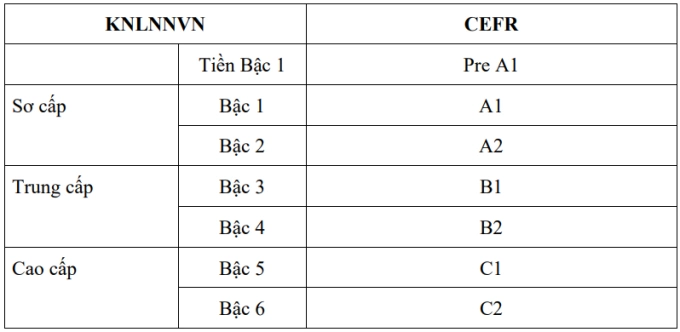 Khung năng lực ngoại ngữ dùng cho Việt Nam mới dự kiến như sau: