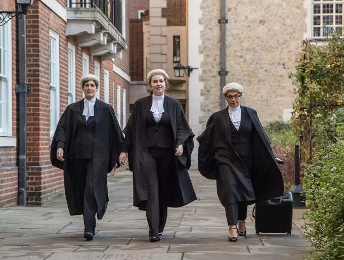 Trang phục truyền thống của luật sư Anh gồm áo choàng đen và tóc giả,nơ cổ màu trắng. Ảnh: Ivy and Normanton