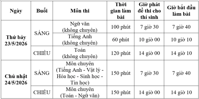 Lịch thi vào lớp 10 trường Phổ thông Năng khiếu:
