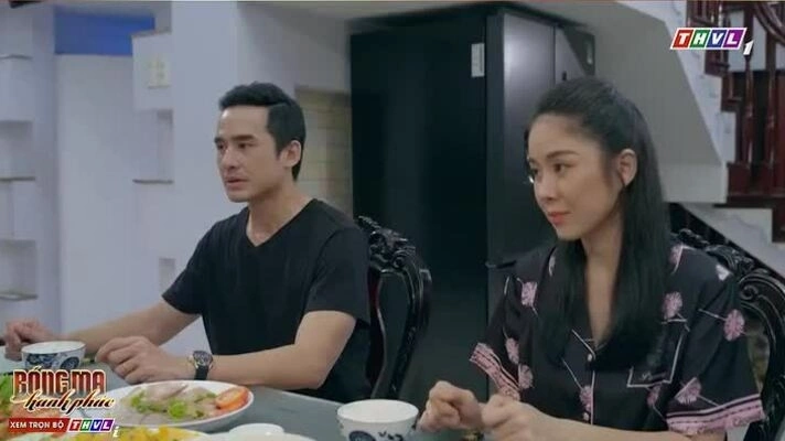 Lương Thế Thành (phải) và Ngân Hòa trong phim "Bóng ma hạnh phúc". Ảnh: THVL