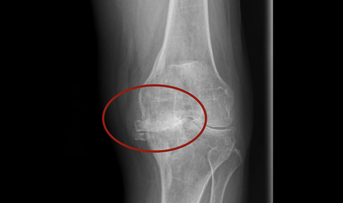 Kết quả chụp X-quang cho thấy khớp gối của bà Hồng tổn thương nghiêm trọng,các đầu xương va chạm trực tiếp vào nhau. Ảnh: Bệnh viện Đa khoa Tâm Anh