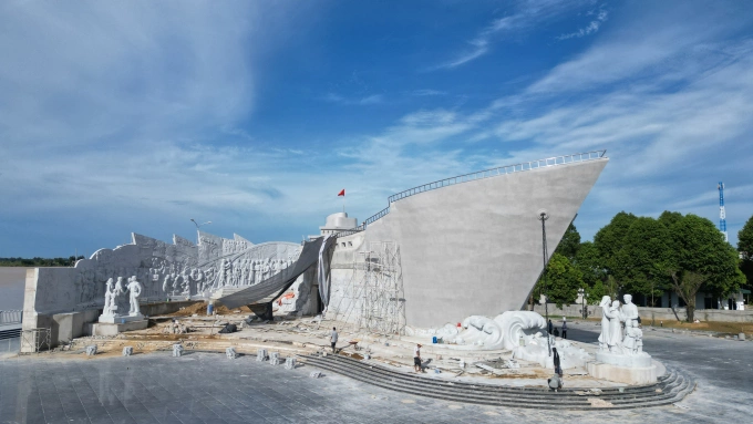 Tượng đài con tàu tập kết ra Bắc ở Sầm Sơn,cách công viên chuyên đề khoảng 500 m. Ảnh: Lê Hoàng