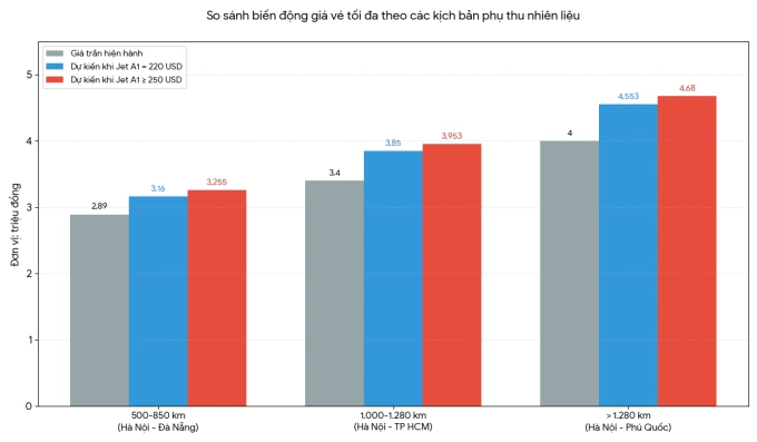 Giá vé máy bay khứ hồi nhiều chặng nội địa và quốc tế tăng từ vài trăm nghìn đến hơn hai triệu đồng buộc nhiều gia đình phải tính toán lại ngân sách hoặc thay đổi kế hoạch tham quan.